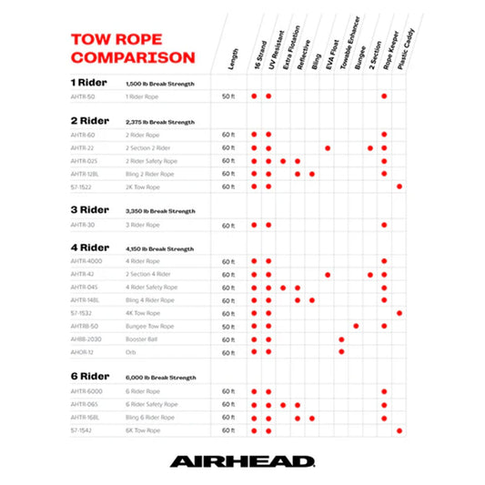 AIRHEAD AHTR-60 60 Foot Length 2375 Pound Tensile Strength 2 Rider Tube Tow Rope