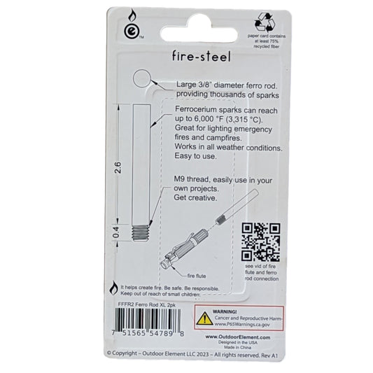 Outdoor Element XL Fire-Steel Replacement 2pk Ferro Rod for Fire Flute