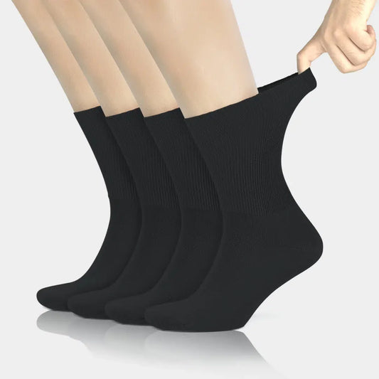 GoWith Men's Cotton Black Crew Seamless Diabetic Socks