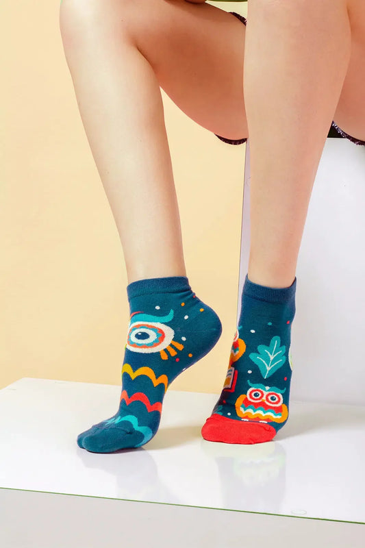 GoWith Women's Cotton Low Cut Cute Funny Mismatched Socks