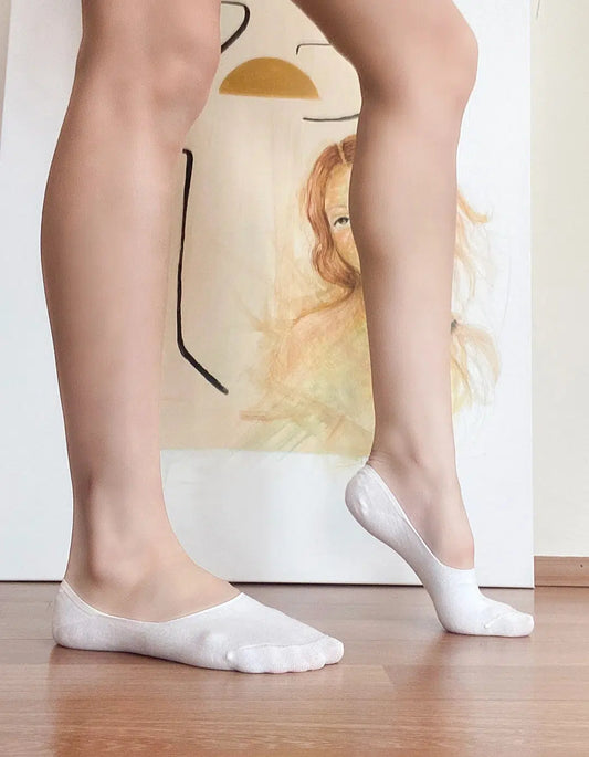 GoWith Women's Bamboo White No Show Non-Slip Socks