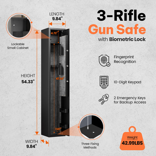 AOBABO 3-Rifle Gun Safe w/Keypad Lock, Security Cabinet Long Safes Gun Cabinet