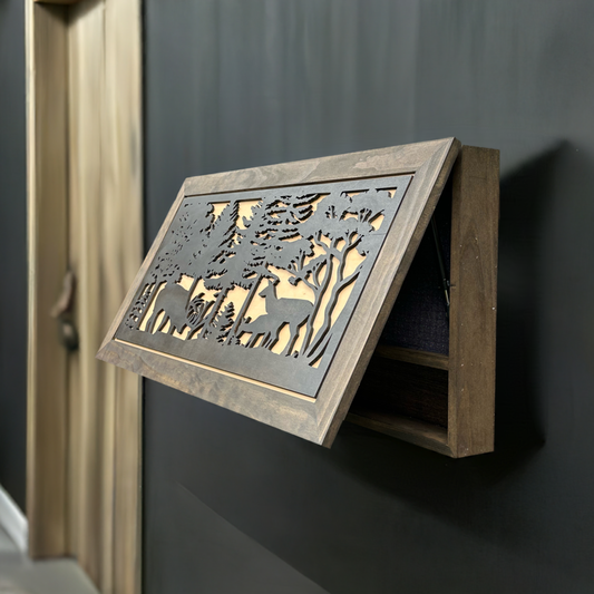 Bellewood Designs - Large Hidden Gun Storage Cabinet Wolf Scene Wall Decor - Wolves In The Woods