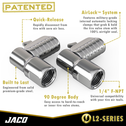 Jaco Lightning™ L2-Series Tire Air Chuck | Open Flow, 1/4" F-NPT (2 Pack)