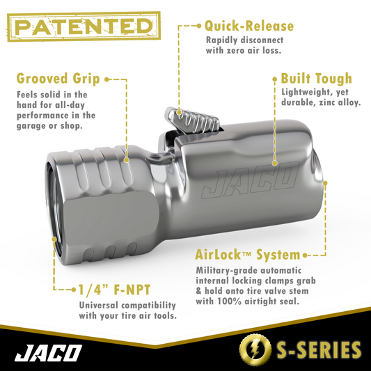 Jaco Lightning™ S-Series Tire Air Chuck | Open Flow, 1/4" F-NPT (2 Pack)