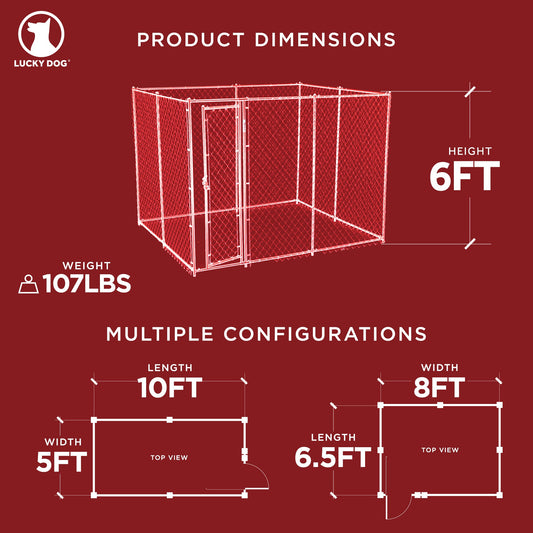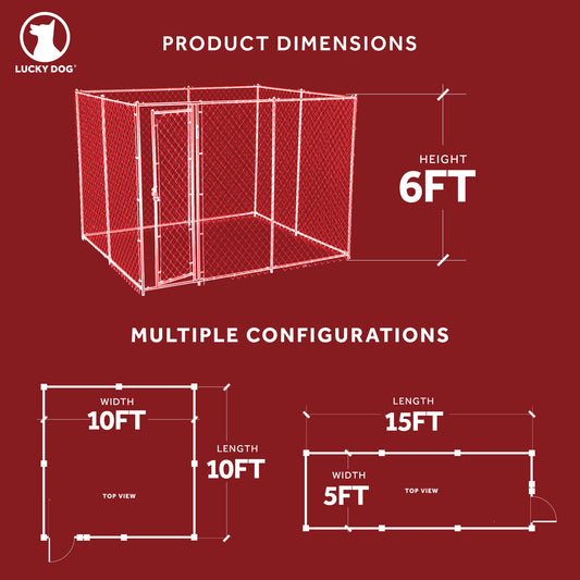 Lucky Dog Adjustable 10' x 10' x 6' Heavy Duty Chain Link Dog Kennel Enclosure