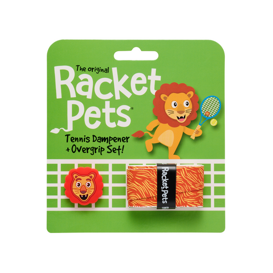 Racket Pets Lion Orange Tennis Overgrip Tape and Matching Shock Absorbing Dampener for Tennis Racket