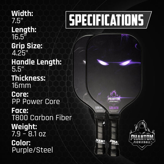 PHANTOM GOLIATH 16MM T800 Carbon Fiber Pickleball Pro Paddle with Cover