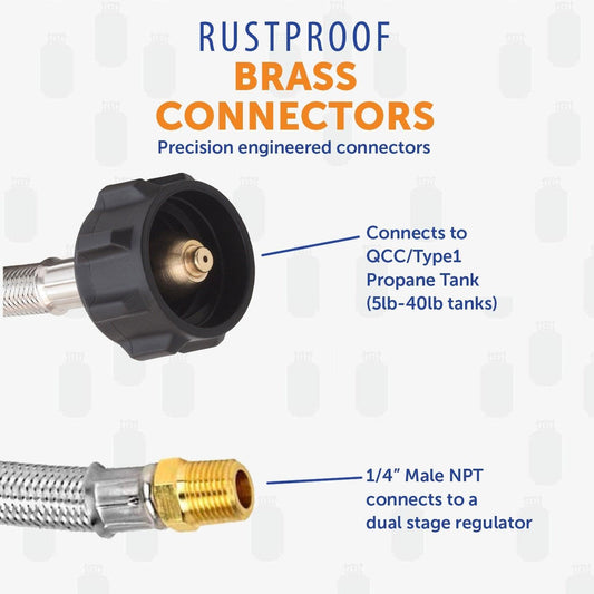 Flame King RV, Van, Trailer, Dual Quick Connect Hose, LP Gas Only, 72 Inch, 1/4 Inch