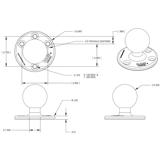 RAM Large Round Plate with Ball - D Size