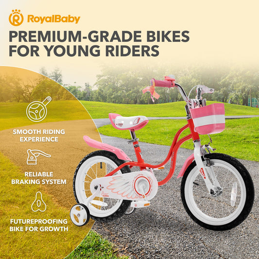 RoyalBaby Princess Girl Kids Bicycle 14 Inch with Training Wheels, Swan/Red
