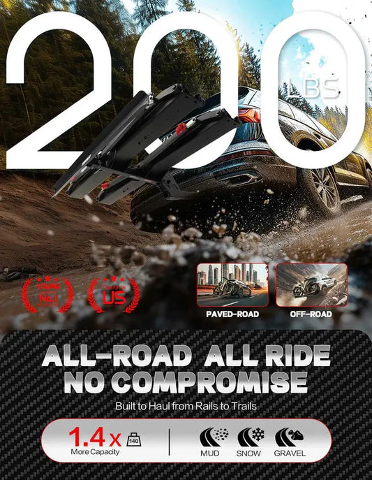 2-Bike Hitch Bike Rack, Folding Fat Tire Bike Carrier, 200 LBS, 2'' Receiver
