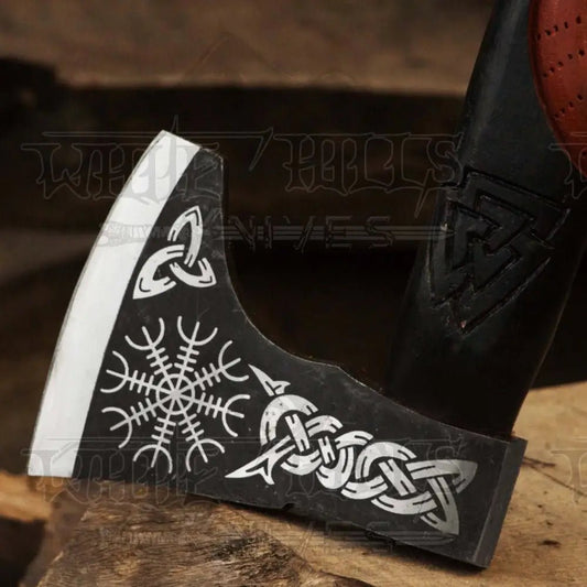 White Hills Knives Premium Viking Axe, Hand Forged Viking Camping Axe with Dark wood Shaft & Carbon Steel