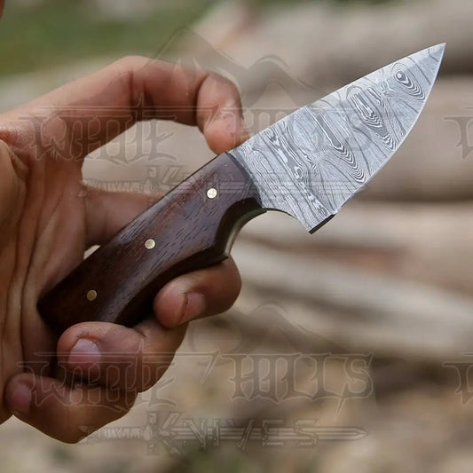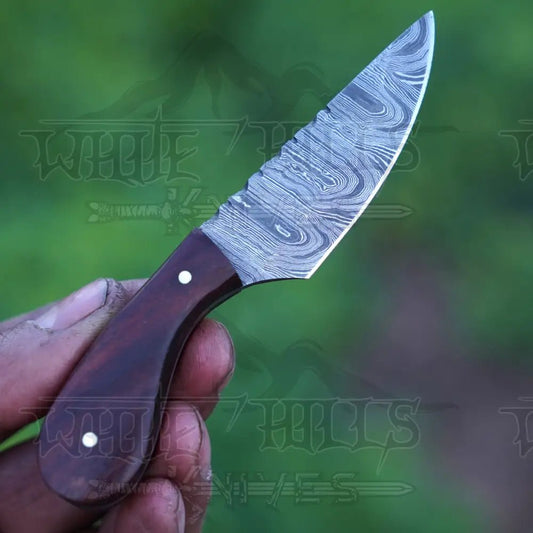 White Hills Knives Handmade Damascus Steel Knife - Rosewood Handle - 5" Full Tang Hunting & Camping Knife - SK-033