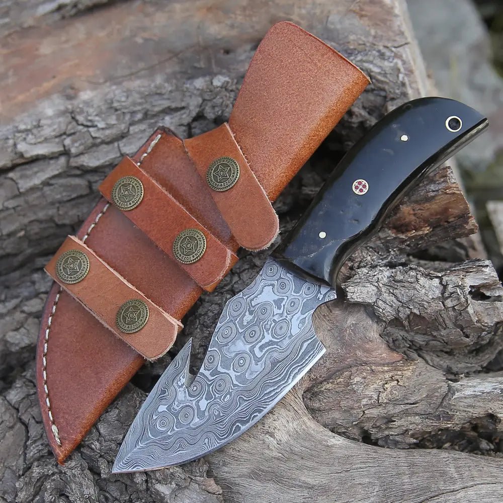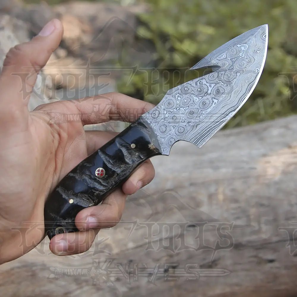 CUSTOM HAND FORGED DAMASCUS STEEL BLADE HUNTING KNIFE WITH GUT HOOK