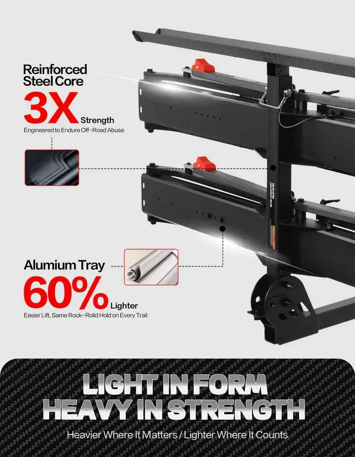 Transform your e-bike adventures with our premium e-bike rack designed specifically for heavy electric bikes. This 200lbs capacity tire-clamp system delivers unmatched stability and protection for your valuable e-bike investment, whether you're heading to rugged trails or navigating city streets.