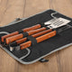 The Picnic Time 3-Piece BBQ Tote is a sleek and stylish barbecue set in a roll-up polyester bag with an adjustable shoulder strap. This highly portable bag securely holds all the stainless steel grilling tools you need for the job: one large spatula with an integrated bottle opener, one bbq fork, and tongs. The perfect gift for the grill master in your life, the tools have extra-long, beautiful wooden handles to keep your hands away from the flames, and metal loops at the ends to hang on the bbq. Fire it up!