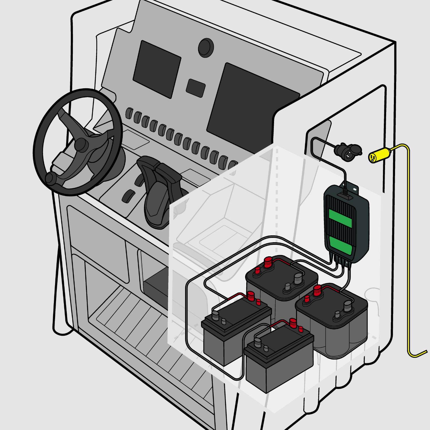 Charge and maintain up to two batteries simultaneously at 3 AMPs per bank with the rugged, water-resistant two-bank battery charger. Battery Tender multibank chargers are uniquely designed to charge each bank independently, regardless of battery chemistry.