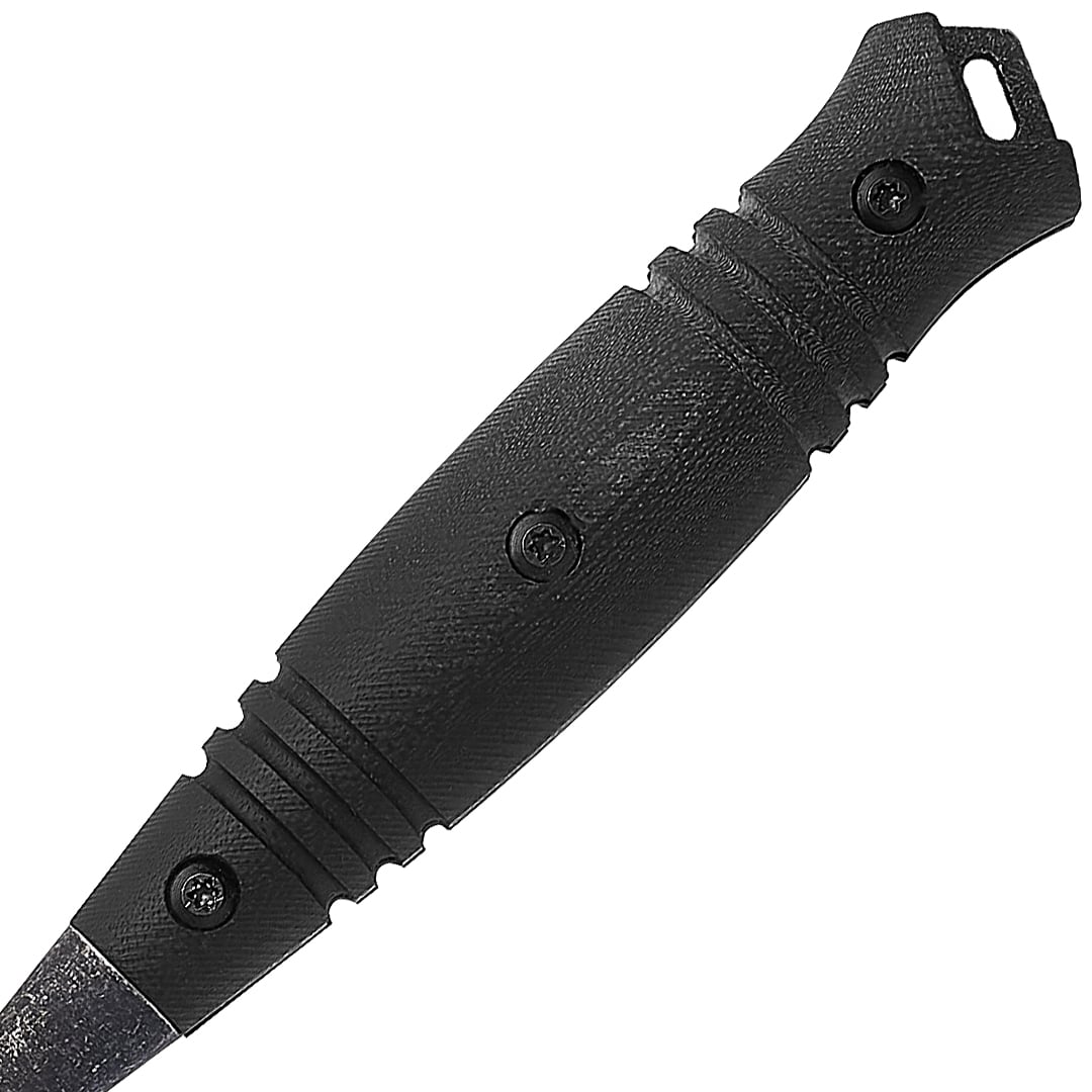 The handle is made of woven G10 material making it extremely strong, durable, and heat resistant. The handle contour provides unparalleled traction, comfort, and control whether wet or dry. All Interceptor Knives include a lifetime warranty protecting against defects in craftsmanship and materials.