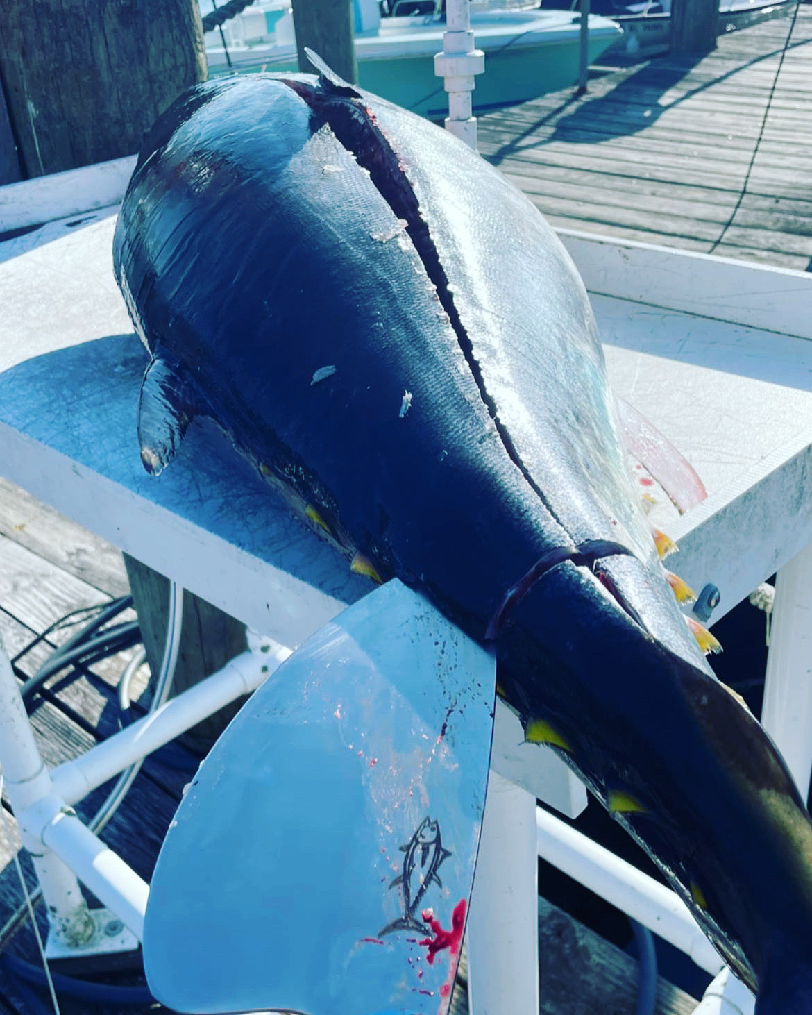 Perfect for quartering Tuna and filleting taking off heads to fit in the fish box. Each one comes with a carbon kydex Saya cover.