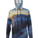 In this Mountaincognito lightweight SunPro Hoodie a lone skier gets first tracks at dawn while enjoying the surreal view above the clouds. The sun protective UPF50 Sunpro Hoodie features a lightweight (150gr.) 4-way stretch fabric (85% polyester 15% Spandex) for comfort and fit unmatched. An internal neck gaiter built into the hood is included for free. Great sun protection, moisture wicking apparel.