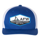 Introducing the AFW Fishing Patch Hat in Royal Blue and White Flextfit Hat. Made with a sleek design and comfortable fit, this hat is perfect for any fishing trip. Keep the sun out of your eyes and represent AFW with this stylish and functional hat.