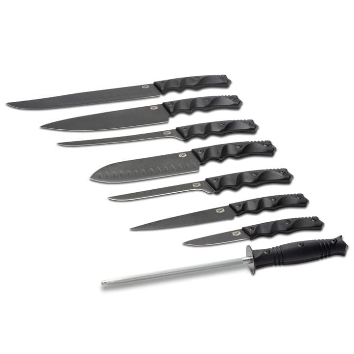 - Knives all feature a non-slip grip perfect for indoor and outdoor use