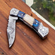 Crafted for everyday elegance and outdoor reliability, this custom handmade Damascus pocket knife features a razor-sharp 3-inch Damascus steel blade. The unique handle blends bone and resin, accentuated by a polished steel bolster for a refined yet rugged grip. A secure back lock mechanism ensures safe use, while the included genuine leather case adds premium storage and protection. Whether for collection, utility, or gifting, this piece combines form, function, and artistry.