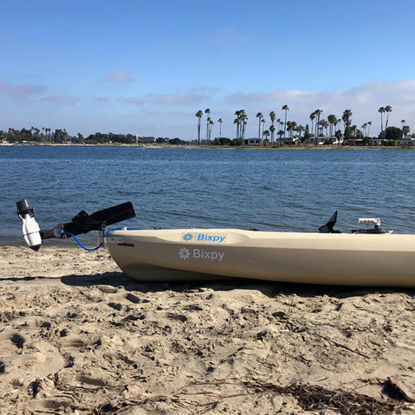 The Bixpy Hand Steering is a compact system which provides steering for the Universal Kayak & Canoe Adapter and the Universal Rudder WillFit™ Adapter. This steering system can also be used for non-Bixpy applications, however, it is not recommended for motors larger than 30 lb in thrust or motors that weigh considerately more than the Bixpy Jets (which only weigh 2 lb).