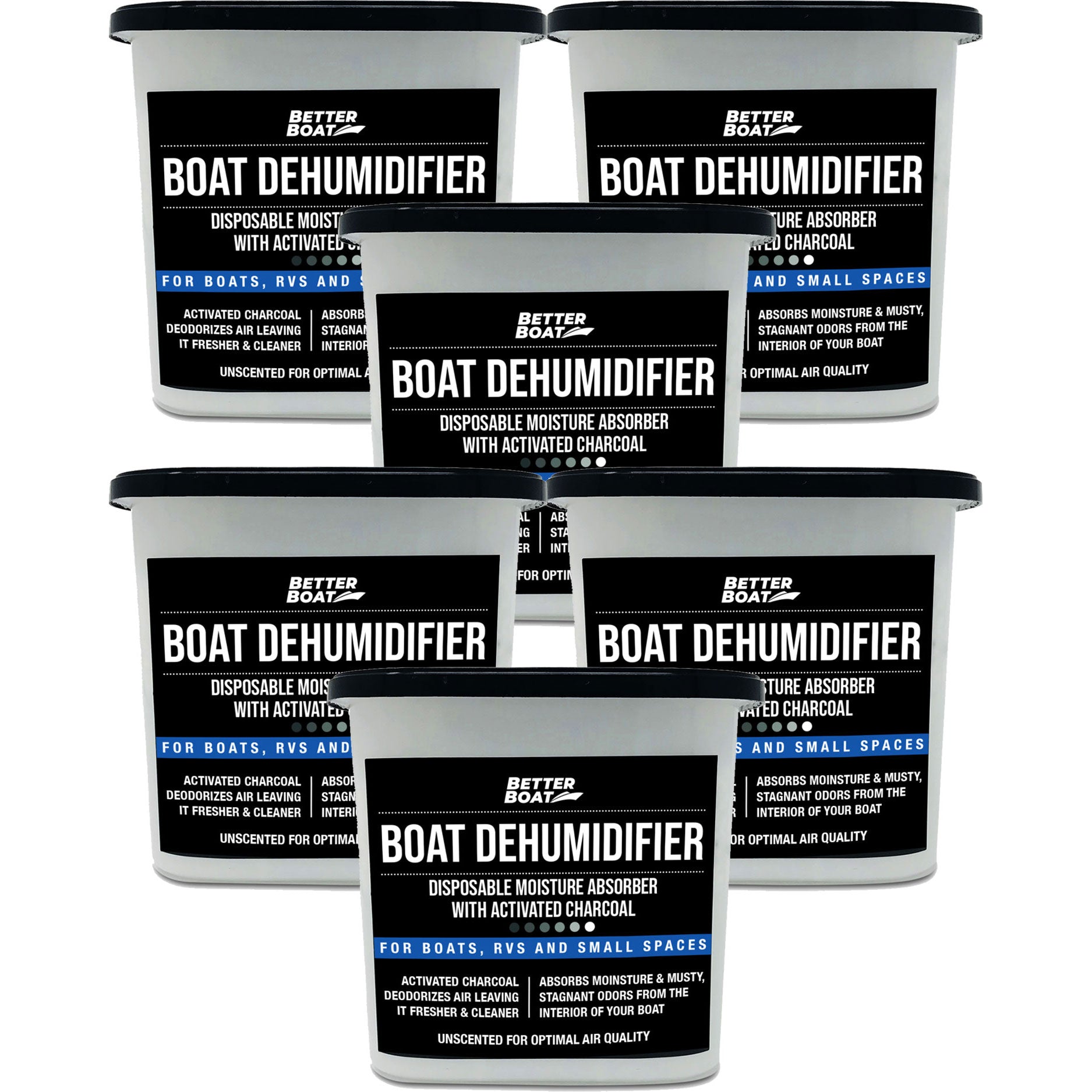 This Better Boat dehumidifier absorbs and traps excess moisture to keep small spaces smelling fresh. Advanced formula combines moisture absorbing pellets with natural activated charcoal that work together to eliminate musty odors and deodorize air. Place in any small enclosed area that you want to manage moisture and prevent mildew - perfect to keep closets, RVs, boat cabins, and more smelling fresh. Try this disposable moisture absorber risk-free for 30 days - love it or get your money back!