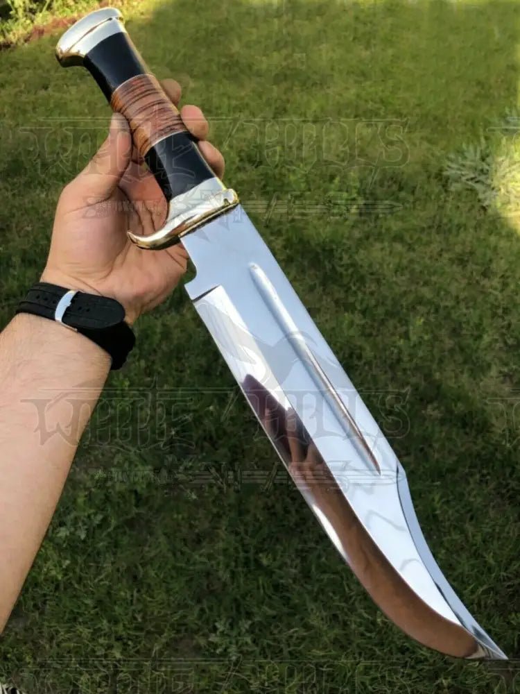 White Hills Knives Bowie Knife - Custom Handmade D2/c430 Tool Steel High Polish Crocodile Dundee Bowie knife