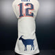 The "Brady Goat Headcover" is a premium golf club headcover crafted from high-quality leather. Designed to fit snugly over the head of a golf club, this headcover features a unique design showcasing an intricately detailed image of a goat, symbolizing the "Greatest of All Time" (GOAT) status associated with legendary athlete Tom Brady. The leather material provides durability and protection for the club, while the goat design adds a touch of personality and style to the golfer's equipment. This headcover is ideal for golfers who admire Tom Brady and want to showcase their appreciation for his exceptional athletic achievements on the golf course.
