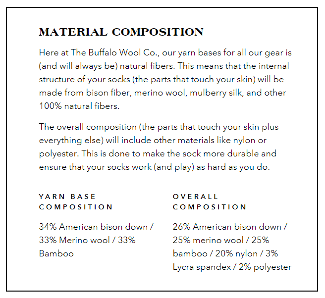 Sometimes a product idea just completely makes sense. We spent a lot of time experimenting and futzing with the base yarn for our B.O.S.S. Socks, trying to get something extremely lightweight, breathable, wicking, cushioning and durable. Getting the proper ratios of bison, wool, bamboo, to insulate, breathe and wick.. and the right amount of twist, not so tight it doesn't have "spring" not so lofty it doesn't wear properly. It took us more than a few attempts, and we missed the summer selling season last year, but our all-weather B.O.S.S. socks have been nothing short of a stellar smash. SO, we thought we would do the next logical thing and make a crew height version of this sock. (Mostly because short socks look kinda silly in dress loafers)
