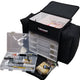- Large zippered top tray with 2 compartments (can be made in to 1 compartment with removable divider)