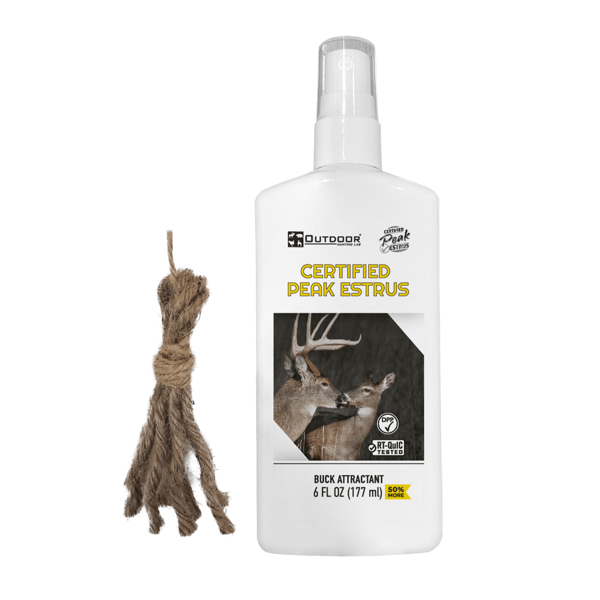 Certified with an estrogen level of 30 pg/ml, this product features multiple functions including a rope scent drag, application to scrapes, and spray from the stand. Its convenient 6 oz bottle includes an atomizer and Drag N Drip rope for easy use.