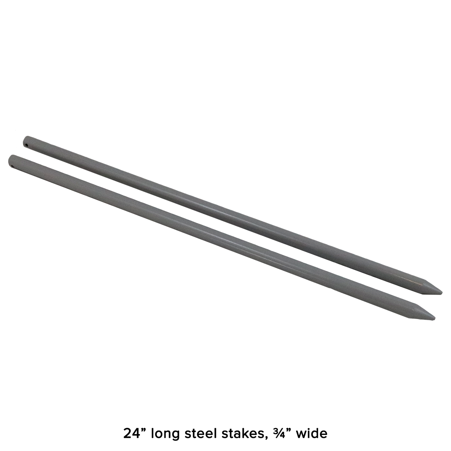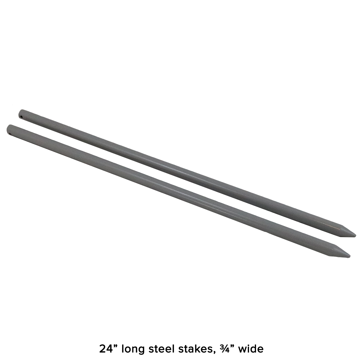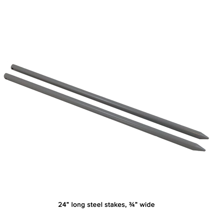 - Each horseshoe is medium weight ~2.25 lbs., steel stakes are 24” long and ¾” wide.