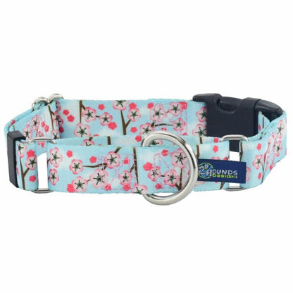 Expertly designed with a cherry blossom print, the 2 Hounds Design collar is a functional and stylish accessory for your dog. The buckle and martingale combination provides gentle control, while the earthy tones offer a timeless look. Perfect for daily walks and training sessions!