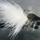 Effective for trout, bass & saltwater species. Tied on Ahrex SA250 shrimp hook, bendback style. 99% weedless, fly rides with hook up enabling its weedless capabilities. This pattern should be tied on the leader with a Lefty's non-slip loop knot for unrelenting action. The smaller sizes 6 & 8 are tied with 1/80 lead eyes and can be cast on a 5 wt lines upward. The size 4 & 2 are tied with 1/50 lead eyes allowing for line wt 6 & up. The fly is effective by being stripped in various ways, dead drifted or manipulated with the rod's tip.