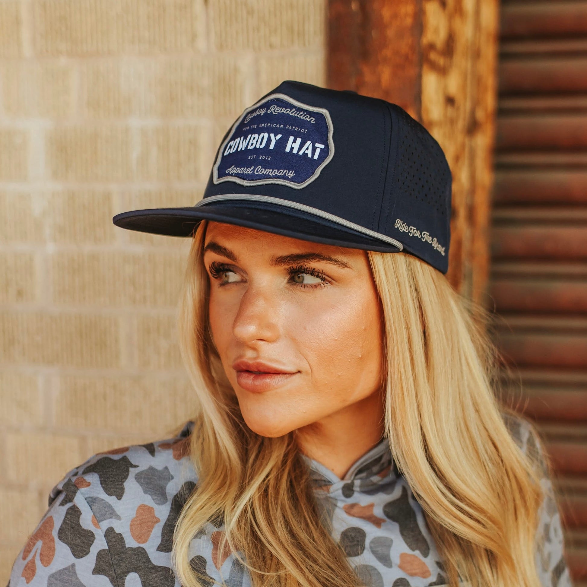 "Ride For The Brand" with our "Cowboy Hat" Navy Blue Performance Patch Hat. Designed for those who live by the Cowboy Code, this hat combines classic American style with modern performance features.