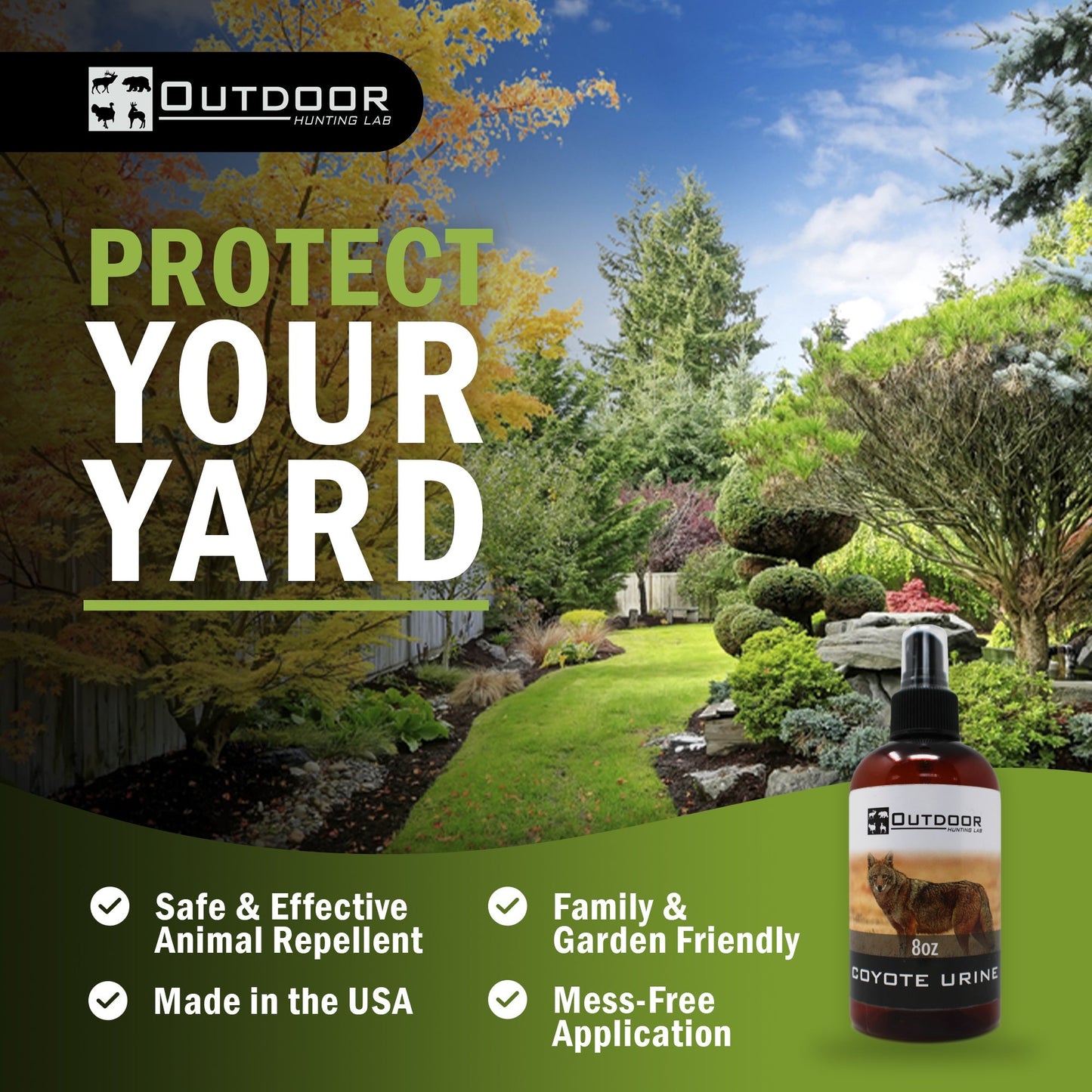 Coyote Urine: Stop deer, rabbits, and other animals from sneaking into your garden with our coyote urine animal deterrent! Applying our coyote urine squirrel deterrent will help to protect your garden. Our coyote urine sprays are also effective coyote trapping supplies, luring inquisitive coyotes into your coyote decoy.