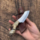 Experience precision and durability with this custom handmade skinning knife, crafted from high-quality D2 steel. With an overall length of 7.5 inches and a 3.75-inch razor-sharp blade, this knife is designed for effortless skinning and field dressing. The ergonomic mountain sheep horn handle offers a secure grip, ensuring comfort and control in every cut. Comes with a premium leather sheath for safe storage and easy carry.