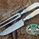 Full Tang Custom Handmade Damascus Blade Fork And BBQ Knife Set