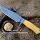 Introducing the Custom Handmade Damascus Hunting Knife from KBS Knives, a perfect blend of beauty and functionality. This 12-inch knife features a high-quality Damascus steel blade, known for its exceptional sharpness and stunning patterns. The handle is crafted from premium olivewood and complemented by a robust Damascus guard, ensuring a comfortable and secure grip. With a Rockwell Hardness of 55-60 HRC, this knife is designed for durability and everyday use. It comes with a protective leather sheath, making it an ideal companion for all your hunting adventures.