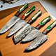 Bring elegance and precision to your kitchen with this custom handmade set of Damascus kitchen knives. Crafted with high-performance Damascus steel blades and ergonomic handles made from premium exotic wood, this set combines function with luxury. Ranging from 13 to 8 inches in length, these knives are designed for versatility—perfect for slicing, dicing, and chopping. Each set comes beautifully packed in a genuine leather roll for safe storage and travel.