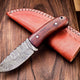 This custom handmade skinning knife features a 3.5-inch blade made from high-quality Damascus steel, known for its durability and striking pattern. With an overall length of 6.25 inches, this compact and efficient knife is ideal for precise cuts during field dressing or skinning. The wooden handle offers a firm, natural grip, perfectly balanced for control. Comes with a genuine leather sheath for safe storage and easy carrying.