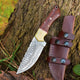 Crafted with precision and designed for hunters, this custom handmade skinning knife combines quality materials with an ergonomic design, making it an essential for skinning tasks. The 4.5-inch Damascus steel blade is expertly crafted for a razor-sharp edge and exceptional durability, ensuring seamless cuts every time. Featuring a camel bone and rosewood handle, this knife not only offers a comfortable grip but also enhances your hunting gear collection with its unique, natural look.