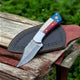 Elevate your hunting or collection game with this Custom Handmade Texas Flag Damascus Steel Hunting Knife. Featuring a stunning Texas Flag design, this knife is crafted with premium Damascus steel for unmatched durability and sharpness. The handle is a masterpiece, combining exotic Pakka wood and camel bone for a unique, ergonomic grip that reflects the spirit of Texas.