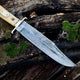 Experience the rugged elegance of the Wild West with this custom handmade Damascus Steel Cowboy Bowie Knife. Crafted with a razor-sharp 13-inch Damascus steel blade, this knife combines functionality and beauty. The handle is made of polished camel bone, offering a firm and comfortable grip, while the brass guard ensures both durability and safety. Whether you're a collector, outdoor enthusiast, or cowboy culture fan, this bowie knife is a must-have addition to your gear. Comes with a premium leather sheath for secure carrying and protection.