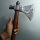 The Damascus Steel Handmade Custom Viking Smoke Pine Tomahawk Axe by KBS Knives Store is a one-of-a-kind weapon that combines exceptional craftsmanship with functionality. Crafted with precision using Damascus steel, this tomahawk features an exquisite pattern that is characteristic of this type of steel. The Rosewood handle offers a comfortable and secure grip, while the smoke pine design adds a touch of visual appeal to this already striking weapon. This Viking Tomahawk Axe also comes with a leather sheath that protects the blade from damage and adds to its overall appearance. Ideal for outdoor enthusiasts and collectors, this handmade custom tomahawk is a unique and powerful weapon that showcases the artisan craftsmanship of KBS Knives Store. Its smoke pine design, coupled with its exquisite pattern and unique features, make it a collectors' item that is sure to impress.