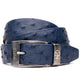 Finish your look with our genuine exotic ostrich belts, featuring beautiful antiqued hand-finishes and soft interior lining. The brushed chrome buckle features subtle Marco Di Milano branding, and it easily removable in case you need your belt trimmed to size.